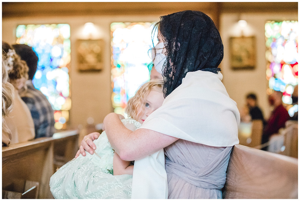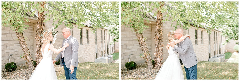 We had planned on going straight to the church to finish getting ready and take some portraits before the ceremony, but it was SO hot that day that we opted to not melt completely before the Mass began. ;) I really do think that had to be a heat record that weekend, phew!!! You can plan everything out to the minute, but sometimes you just have to roll with what the weather dictates! We did make sure to get in the father-daughter first-look prior to the ceremony though...oh my gosh. Tears.